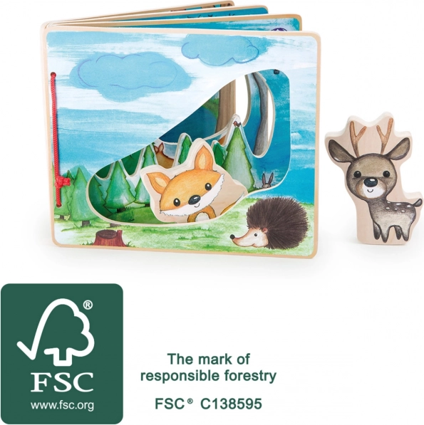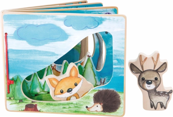 Vstupte do hlubokého lesa s interaktivní dřevěnou knihou, která stimuluje fantazii dětí. Díky figurkám lišky a jelena, které pomáhají objevovat flóru a faunu, se stane každá hra jedinečným zážitkem.