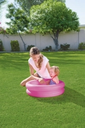Hledáte malý a bezpečný bazének pro nejmenší? Tento růžový nafukovací brodítko BESTWAY je ideální pro děti od 2 let. Dva samostatné prstence zajišťují stabilitu a pohodlí při cákání, zatímco odolný vinyl odolá běžnému používání po více sezón.