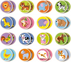16 párů dřevěných žetonů se zvířátky