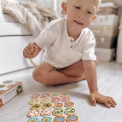Jak hrát? Rozložte všechny žetony obrázkem dolů, hráči se střídají v otáčení dvou žetonů a snaží se najít shodný pár. Vyhrává ten, kdo nasbírá nejvíce dvojic. Díky pevnému dřevěnému provedení a hladkým hranám je produkt odolný, bezpečný a příjemný na dotek.