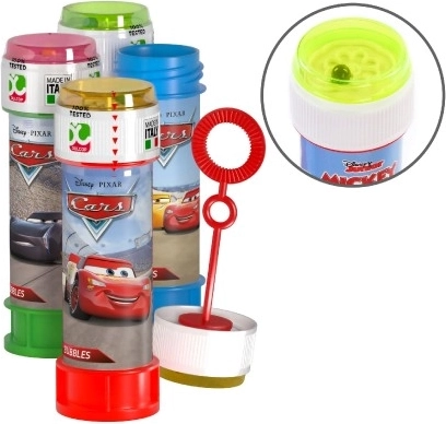 Bublifuk s motivem Cars o objemu 60 ml přináší spoustu zábavy díky barevnému víčku, ve kterém se ukrývá zábavná hra. Foukátko je součástí víčka.