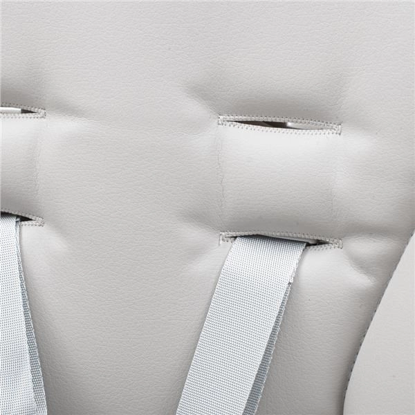 Bezpečnost zajišťují 5bodové pásy a stabilní konstrukce. Dvojitý odnímatelný pultík usnadňuje servírování i úklid, zatímco široké tvarované sedadlo a měkké polstrování poskytují dítěti pohodlí během jídla i odpočinku.