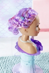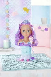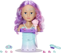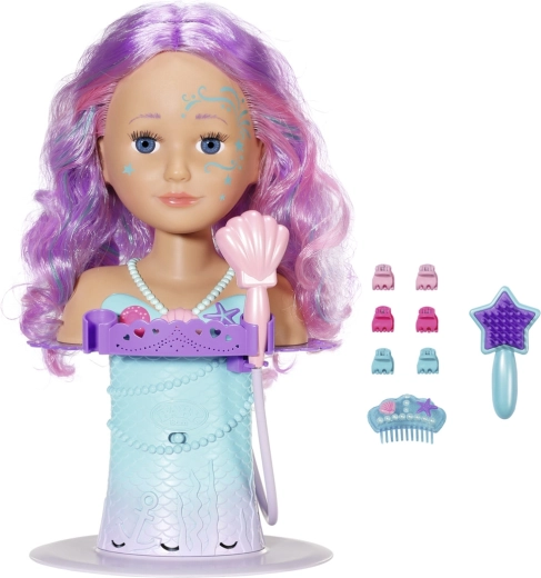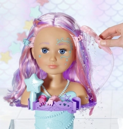 Proměňte koupel do kouzelného salonu krásy s česací hlavou BABY born Sister v designu mořské víly. Díky přísavkám ji snadno upevníte na okraj vany, kde potěší dlouhými, kvalitními prameny pro nekonečné účesy, elektronickou sprchou s čerpadlem a bohatým příslušenstvím. Podporuje kreativitu, jemnou motoriku a nabízí dlouhotrvající zábavu při mytí, česání i zdobení vlasů.