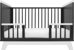Nastavte rošt do 3 výšek pro pohodlnou péči. Později odeberte bočnici a použijte přiloženou zábranu – vznikne pohodlná postel pro batole.