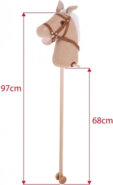 Manšestrový kůň na tyči je ideální hračkou pro děti, které milují pohyb. Tento koník je vybaven měkkou manšestrovou hlavou, nadýchanou hřívou a praktickými otěžemi. Dvě dřevěná kola na konci tyče umožňují hladký pohyb po rovném povrchu, aniž by zanechala stopy.