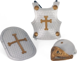 Sada obsahuje vše, co malí rytíři potřebují pro naplnění svých hrdinských snů – meč s pochvou, štít, helmu a vestu.