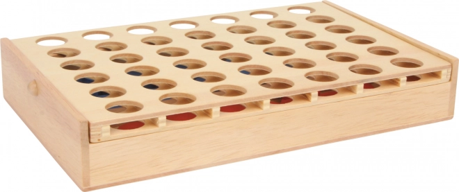 Tato dřevěná hra je ideální na cesty díky svému kompaktnímu designu. Hráči střídavě vhazují červené a modré disky do svislých sloupců, přičemž cílem je vytvořit řadu čtyř disků stejné barvy. Díky kvalitnímu dřevěnému provedení má hra nejen estetický vzhled, ale je i odolná a dlouhodobě trvanlivá.