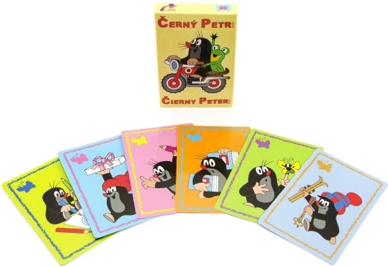 Oblíbená karetní hra Černý Petr s KRTKEM přináší zábavu pro celou rodinu. Balíček obsahuje 24 karet s oblíbenými motivy, kartu s Černým Petrem a kartu s návodem. Karty i krabička jsou z pevného kartonu s lesklou, voděodpudivou úpravou pro delší životnost. Produkt nese ocenění Česká kvalita a Bezpečná a kvalitní hračka.