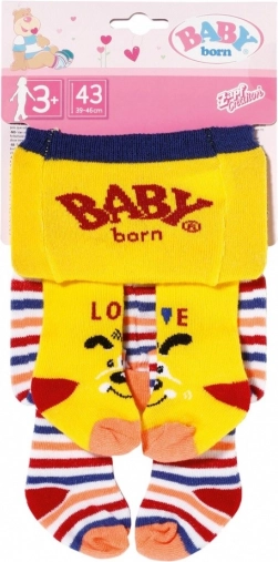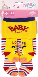 Punčocháče Baby Born přinášejí pohodlí a styl v jednom balení, obohacené o hravé vzory. Díky motivům králíčka Benna a pejska Bella budou děti nadšené. První dvojice kombinace růžové a modré překvapí Benno mávajícím z růžových punčocháčů s modrým konfetti a králíčka na modrých pruzích. Druhá dvojice nabízí slunečně žluté a barevně pruhované punčocháče s obrázkem pejska.