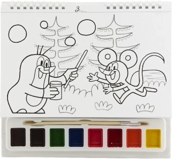 Interaktivní omalovánka s oblíbeným Krtkem, doplněná kvalitními vodovými barvami a přírodním štětcem, nabízí skvělý způsob, jak rozvíjet dětskou kreativitu a motoriku.