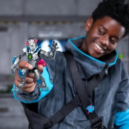 Zažijte vědecký experiment ve stylu MRBEAST: naplňte kontejner tekutinou, zatřepejte a sledujte, jak se odhalí futuristická kovová šelma – Metallic Panther. Figurka vypadá jako mechanický predátor s metalickým povrchem, modrými akcenty a zeleným jádrem na hrudi.