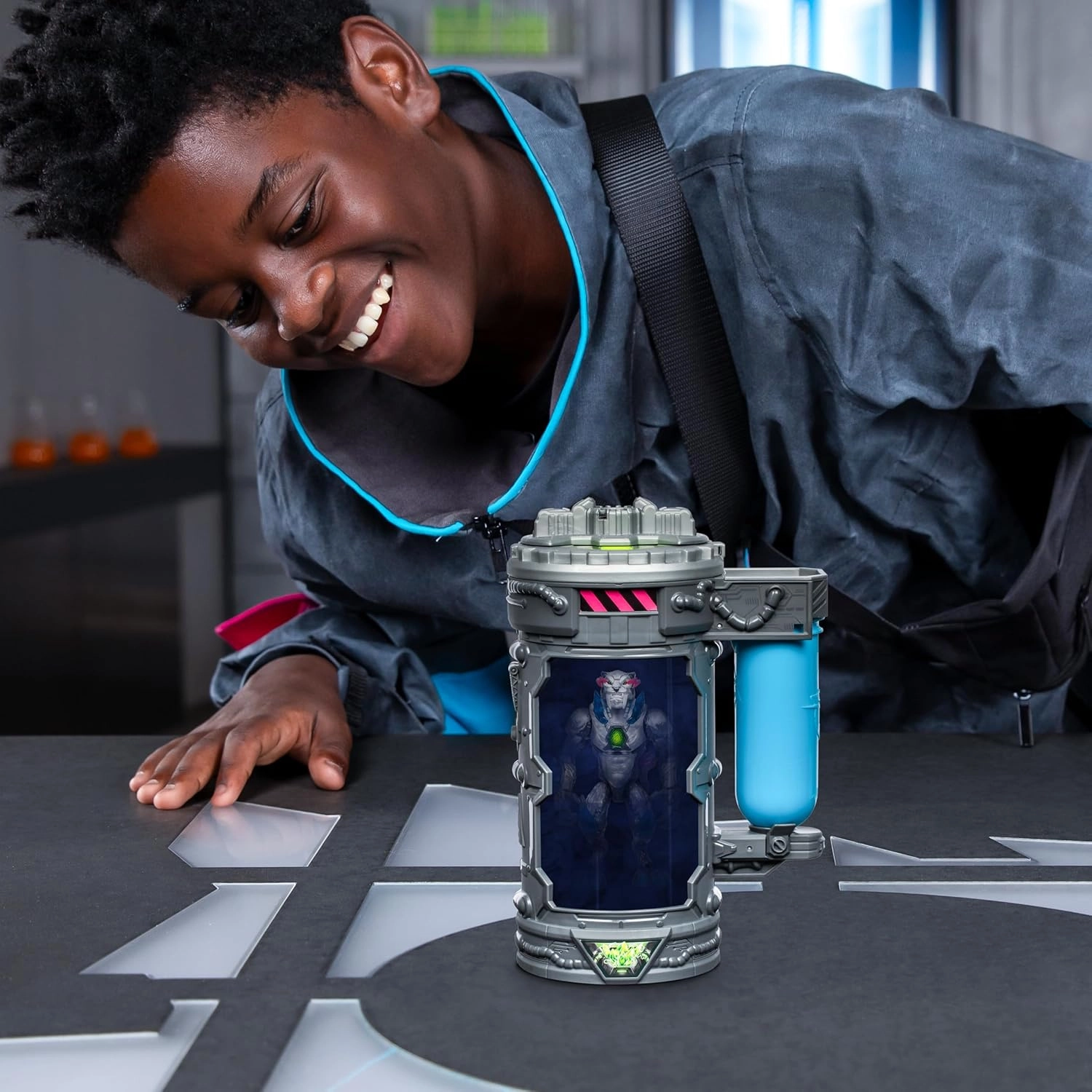 Součástí je sci‑fi kontejner s „laboratorním“ postupem. Přidej tekutinu, stiskni a sleduj odhalení Metallic Panther – skvělá hra i představení.
