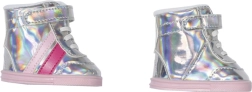 BABY born Holografické sportovní boty jsou ideálním doplňkem pro každou malou stylistku. Tyto stylové stříbrné boty s růžovými pruhy a suchými zipy zaručují snadné obouvání a skvěle doladí každé módní oblečení pro panenky.