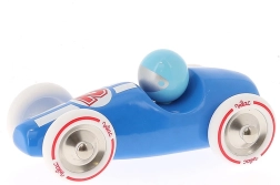 Modré závodní auto Vilac vyniká čistým retro designem, precizním zpracováním a odolnými materiály. Lakované dřevo je příjemné na dotek a snadno se udržuje, kovové prvky a pogumovaná kola zajišťují hladkou a tichou jízdu po různých površích. Hra s autíčkem podporuje koordinaci oko–ruka, rozvíjí fantazii i soustředění.