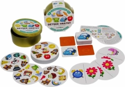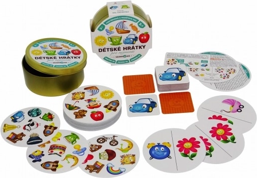 Praktická plechová krabička chrání karty a vejde se do batůžku – perfektní volba na dovolenou, víkend u prarodičů nebo čekání u lékaře. Hry podporují jemnou motoriku, vizuální rozlišování a zdravou soutěživost v rodině.