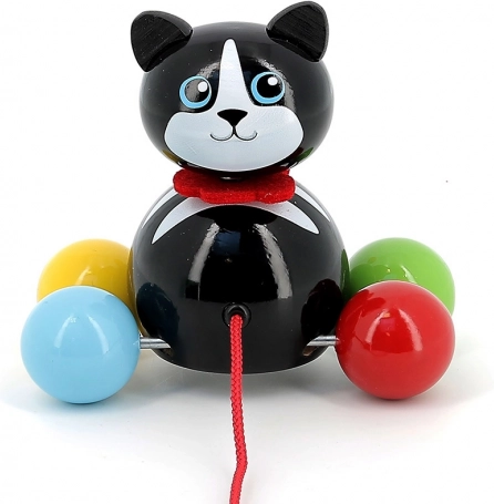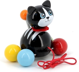 Tahací kočička Minou je skvělým společníkem pro první procházky po bytě. Děti si díky barevným kuličkovým kolečkům a červené šňůrce hračku snadno oblíbí a přirozeně rozvíjejí hrubou motoriku, stabilitu i koordinaci oko–ruka. Lehká a odolná konstrukce z lakovaného masivu je příjemná na dotek a snadno se čistí.