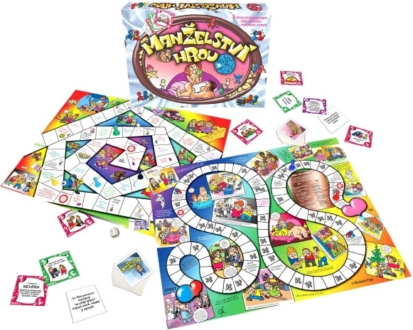 Set dvou her v jedné krabici přináší chytrou kombinaci humoru a poučení. V Manželství hrou se dvojice vydává po herním plánu od startu do cíle, sbírá karty, plní úkoly a sleduje Manželský bodový systém – po překročení hranice 12 bodů přichází sankce! V Tchyně to zařídí se k zábavě mohou přidat i rodinní příslušníci a přátelé. Ne vždy rozhoduje „správná“ odpověď – dost často zvítězí vtip, pohotovost a nadhled.