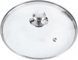 Univerzální skleněná poklice o průměru 32 cm s nerezovým okrajem a knoflíkem spolehlivě sedí na hrncích i pánvích. Žáruvzdorné čiré sklo umožní kontrolu vaření bez nadzvedávání, odvětrávací otvor odvádí přebytečnou páru a lehce klenutý tvar podporuje cirkulaci tepla. Díky těsnému dosednutí urychlí vaření a omezí prskání.