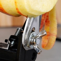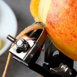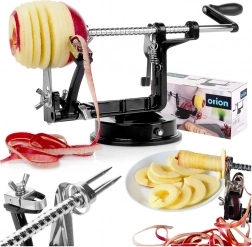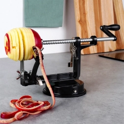 Praktický kuchyňský pomocník, který v jedné operaci oloupe, vykrojí jádřinec a nakrájí jablka, hrušky či brambory na efektní spirály. Díky přesnému vedení a ostrým nožům získáte pravidelné plátky ideální na štrúdly, křupavé chipsy, sušení či dekorativní servírování.