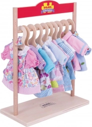 Šatník pro panenky Bigjigs je skvělým doplňkem pro každou malou módní návrhářku. Tento dřevěný stojan je vyroben z kvalitních a zodpovědně získaných materiálů, a vaše dětská sbírka panenkovského oblečení tak bude vždy uspořádaná a chráněná před poškozením.