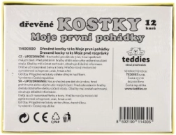 Tato sada 12 dřevěných obrázkových kostek v pevné papírové krabičce přináší dětem radost ze skládání i volného stavění. Z kostek poskládáte 6 půvabných pohádkových scén – od Karkulky až po Jeníčka a Mařenku – a zároveň z nich postavíte komíny, hrady či ohrádky pro zvířátka.