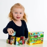 Dvanáct kostek umožní dětem poskládat šest různých scén – například Karkulku či Jeníčka a Mařenku. Zábava, která se jen tak neomrzí.