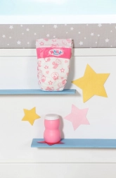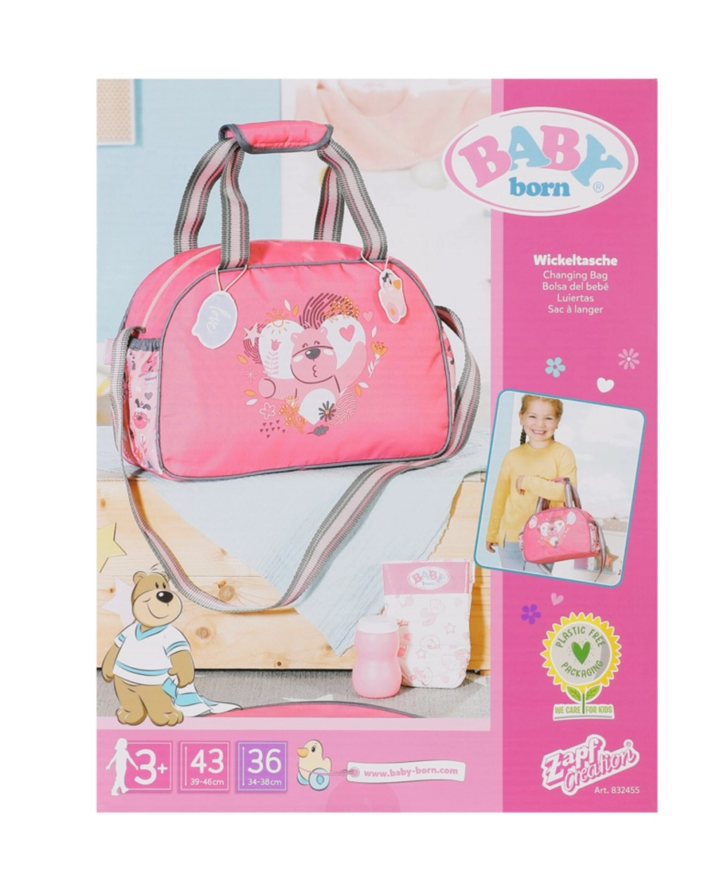 Tato stylová přebalovací taška pro panenky BABY born je navržená pro snadnou organizaci všech nezbytností na výlety i každodenní péči. Děti v ní najdou přebalovací podložku, plenku a dózu na pudr, a stále zbývá prostor na další drobnosti, které se na cesty hodí.