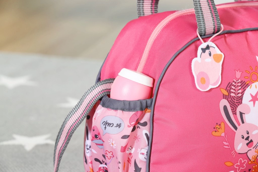 Díky popruhu přes rameno i pevným uším se taška pohodlně nosí různými způsoby. Roztomilé visačky na ramenních popruzích navíc poslouží jako zábavný detail při přebalování. Set je kompatibilní s panenkami 36 cm a 43 cm a podporuje nápaditou, rozmanitou a dlouhotrvající hru.