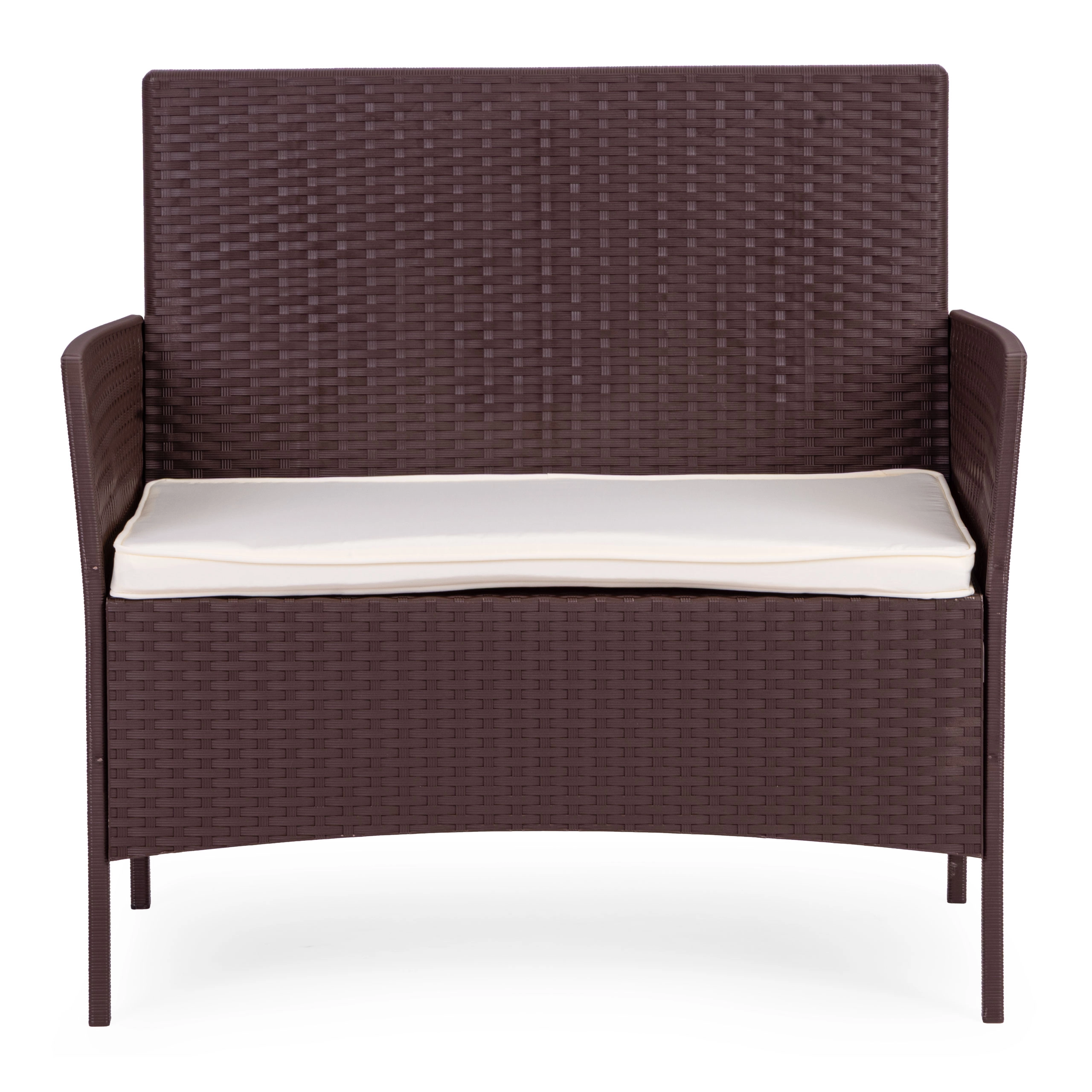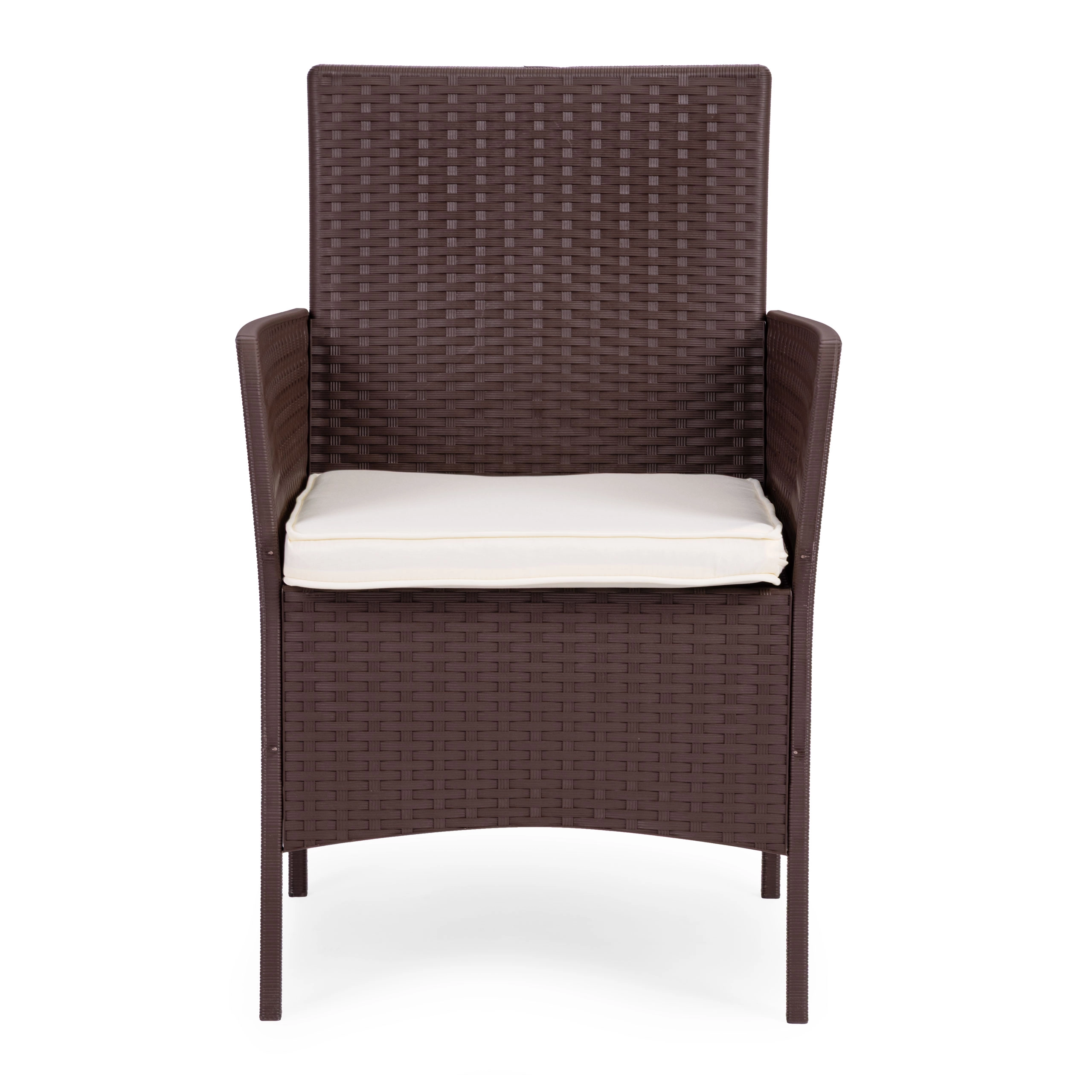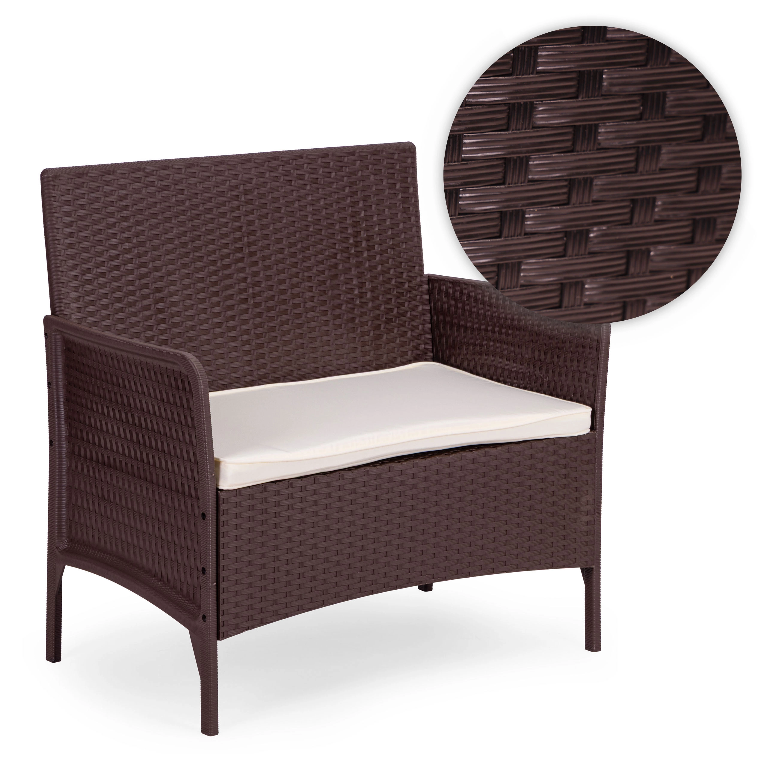 Vytvořte si příjemné místo k posezení a relaxu. Tato 4dílná zahradní souprava v hnědé barvě kombinuje vzhled technoratanu s praktickými výhodami odolného plastu. Je ideální pro každodenní používání na zahradě i terase a díky tvrzenému sklu na stolku získáte stabilní a bezpečnou odkládací plochu pro kávu i občerstvení.