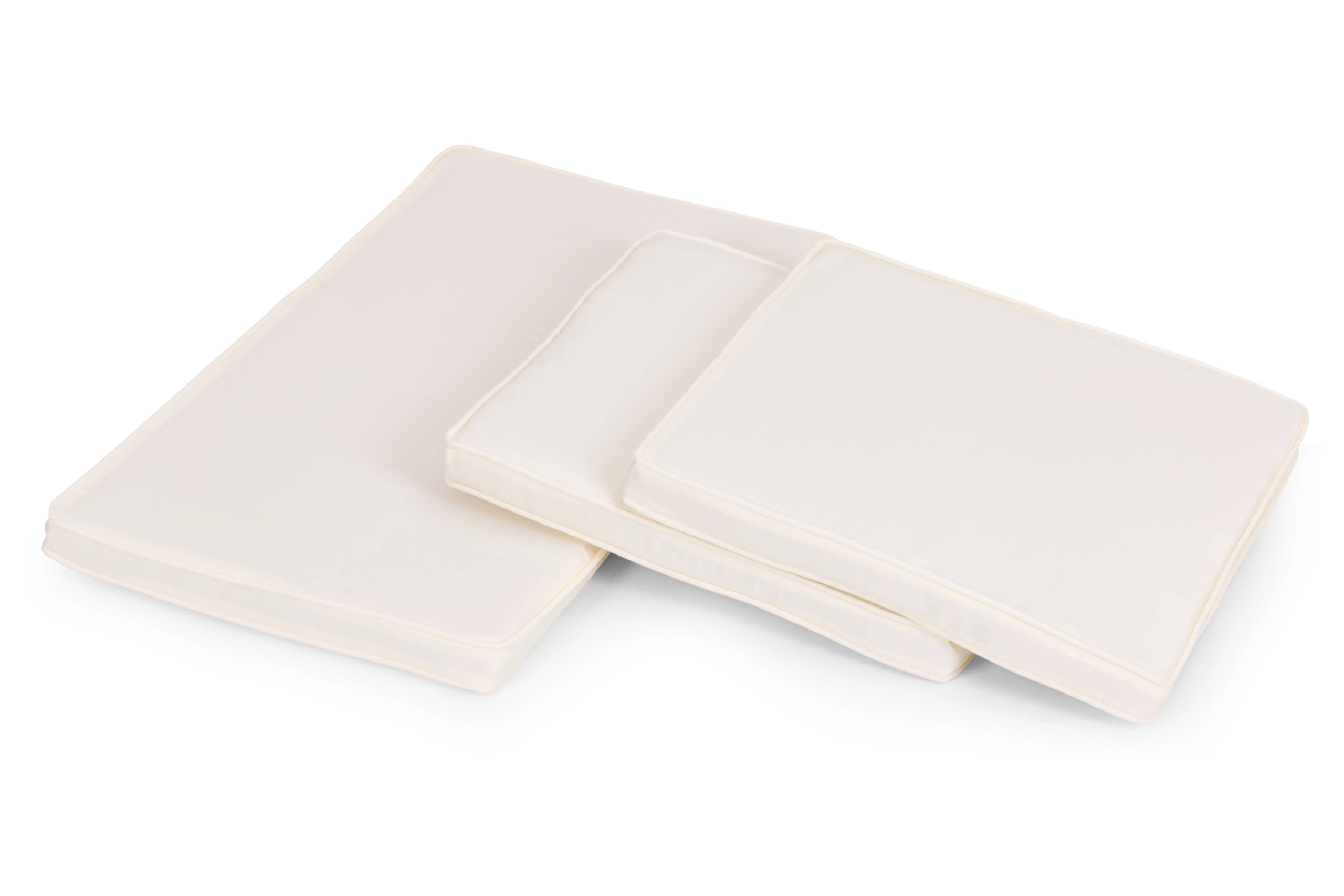 Součástí jsou sedáky z polyesteru 160 g/m² s tloušťkou 5 cm. Poskytují komfort při sezení a lépe odolávají vlhkosti a slunečnímu záření.