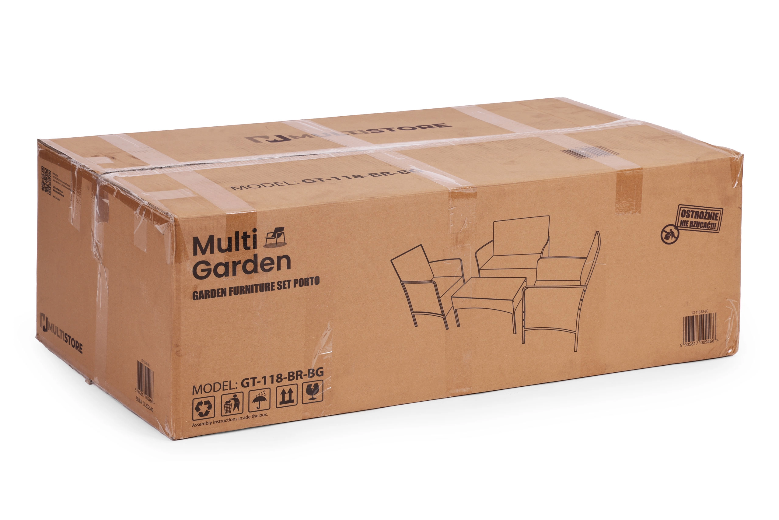 Elegantní zahradní set pro 4 osoby od MULTIGARDEN přináší styl a pohodlí na terasu, balkon i do pergoly. Obsahuje 2 křesla, lavici a konferenční stolek s tvrzeným sklem. Odolná plastová konstrukce s efektem ratanu skvěle snáší počasí a snadno se udržuje, zatímco polštáře z polyesteru 160 g/m² zajišťují pohodlné sezení. Nosnost až 150 kg na křeslo a 250 kg na lavici.