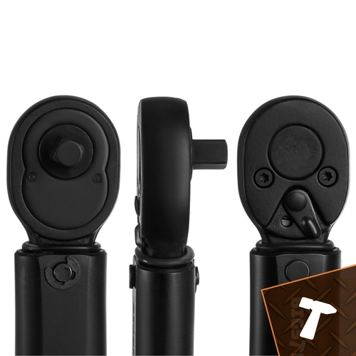 Robustní hlava s přepínačem směru a rychloupínáním pro spolehlivé dotažení i uvolnění. Klikový mechanismus jasně signalizuje dosažený moment.