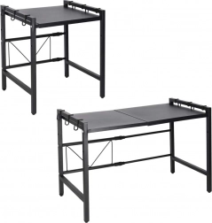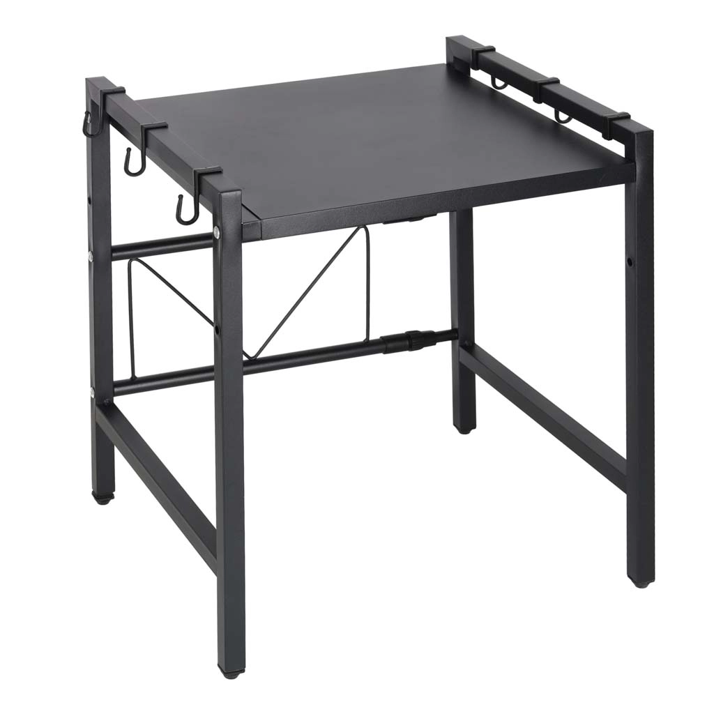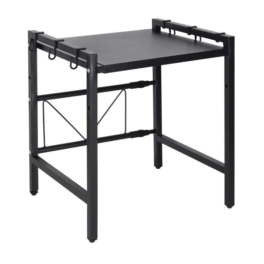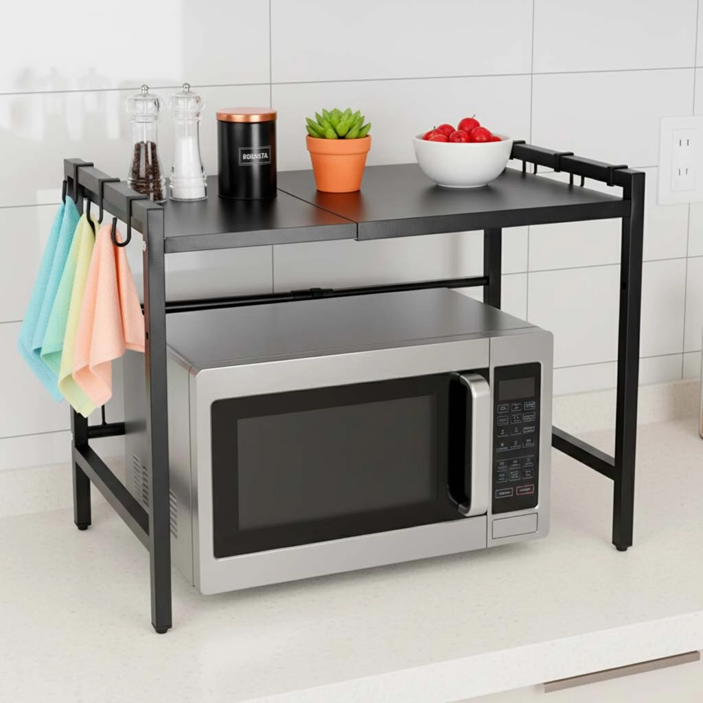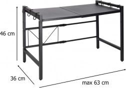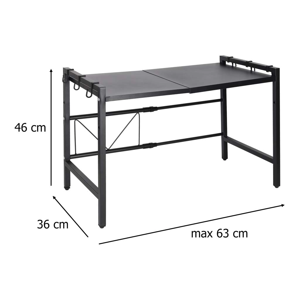 Udělejte pořádek v kuchyni a využijte prostor nad mikrovlnnou troubou naplno. Tato kovová police s industriálním nádechem nabízí roztažitelnou šířku 38–63 cm a regulovatelnou výšku polic (34 nebo 43 cm), takže ji snadno přizpůsobíte spotřebičům i nádobí. Práškově lakovaná ocel je odolná vůči poškrábání a vlhkosti, takže skvěle slouží i v náročném provozu.