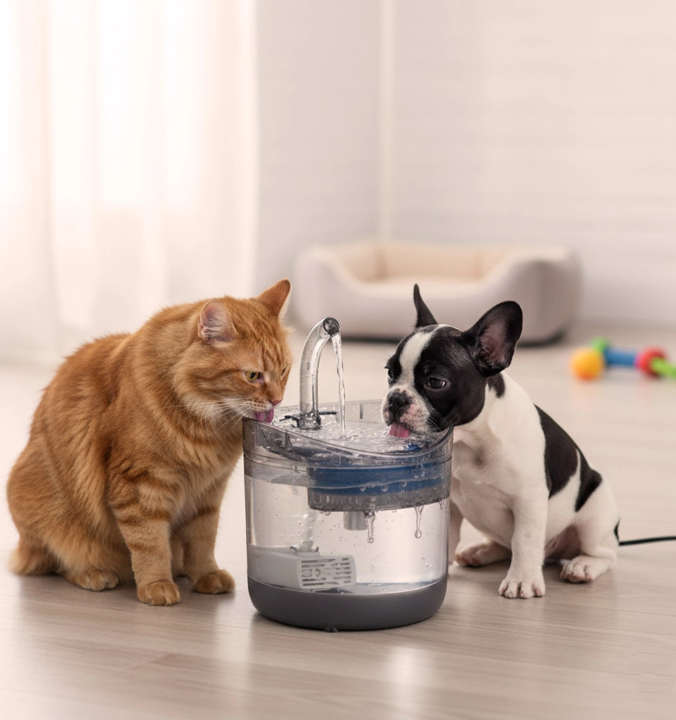 Automatická fontána pro psy a kočky podporuje pravidelné pití tím, že nabízí neustále proudící, čerstvou a filtrovanou vodu. Díky tichému chodu neruší domácnost ani citlivé mazlíčky a průhledné tělo nádoby umožňuje rychlou kontrolu množství vody.