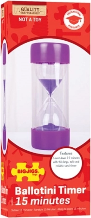 Velké přesýpací hodiny Bigjigs Toys jsou perfektní pomůckou pro určení doby činností jako je učení nebo úklid. Vnitřní nádobka na písek je ze skla a je chráněna pevným plastovým obalem. Splňuje současné evropské bezpečnostní normy.
