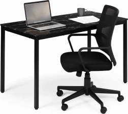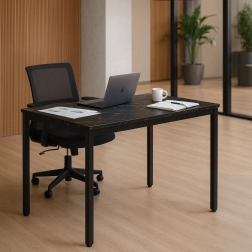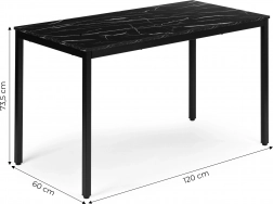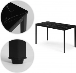 Moderní a nadčasový stůl v dekoru černého mramoru vyniká čistou linií, která zapadne do skandinávských, moderních i industriálních interiérů. Díky rozměrům 120 × 60 cm nabídne dostatek prostoru na stolování, práci u počítače, učení i kreativní činnosti. Melaminová povrchová úprava je odolná vůči poškrábání a snadno se udržuje.