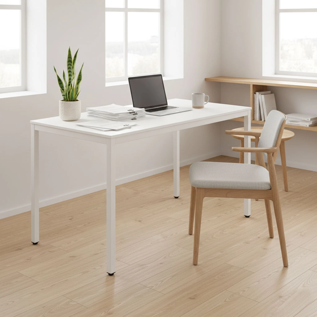 Hledáte stůl, který zvládne každodenní stolování i práci? Tento bílý stůl od značky ModernHome kombinuje čistý vzhled, odolné materiály a praktické rozměry. Deska 120 × 60 cm poskytne dost místa pro rodinné obědy, učení i práci na notebooku.