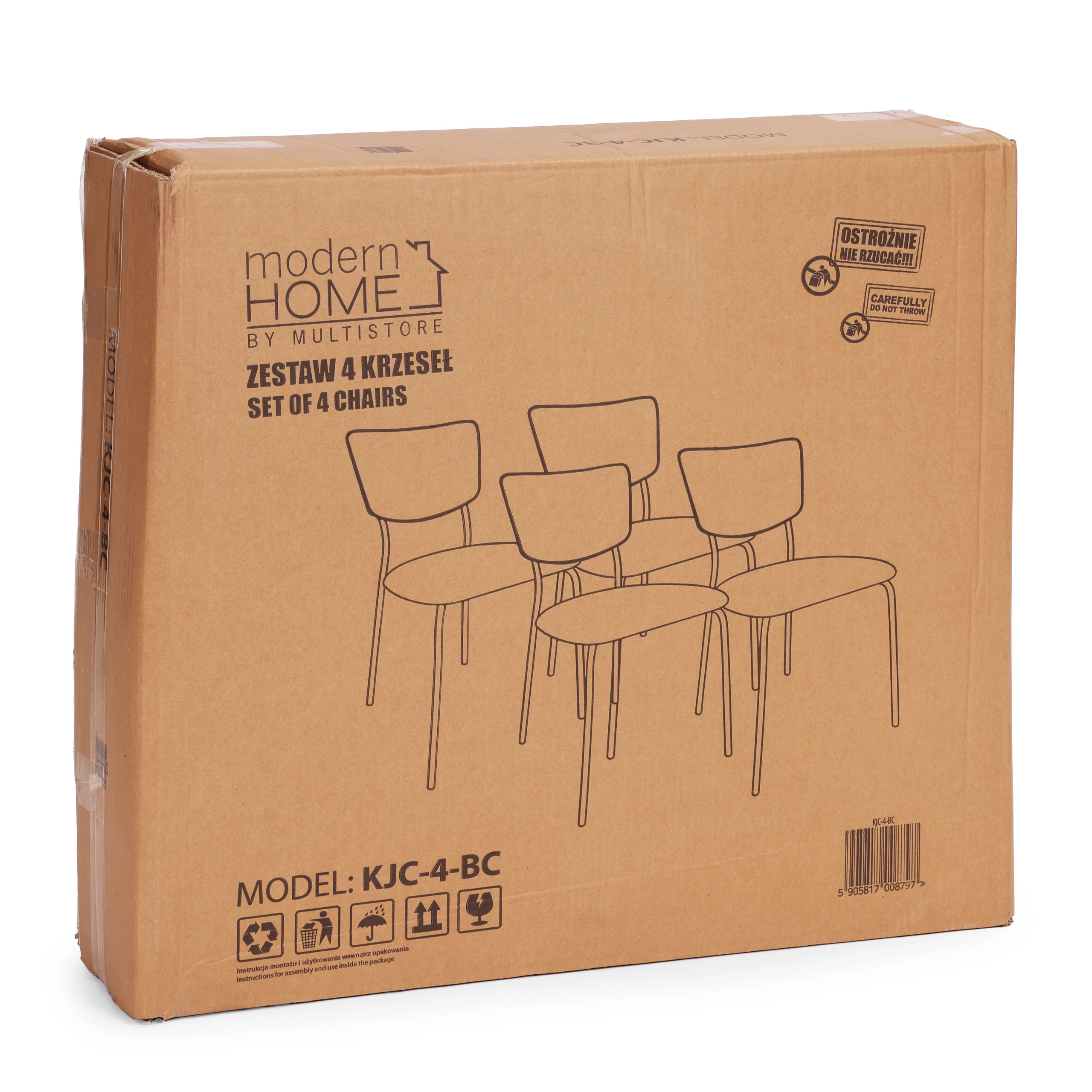 Elegantní sada 4 židlí ModernHome vnese do jídelny i obýváku moderní styl a pohodlí. Odolná kovová konstrukce, příjemné sametové čalounění, měkké pěnové polstrování a ergonomicky tvarované opěradlo zajistí komfort každý den. Židle jsou stohovatelné, mají ochranné koncovky nohou a unesou až 120 kg.
