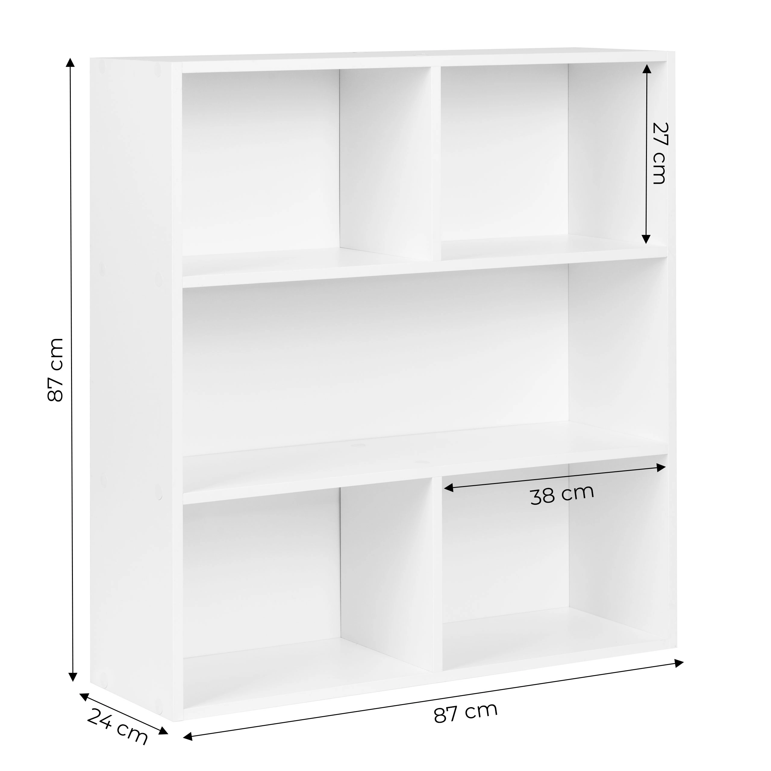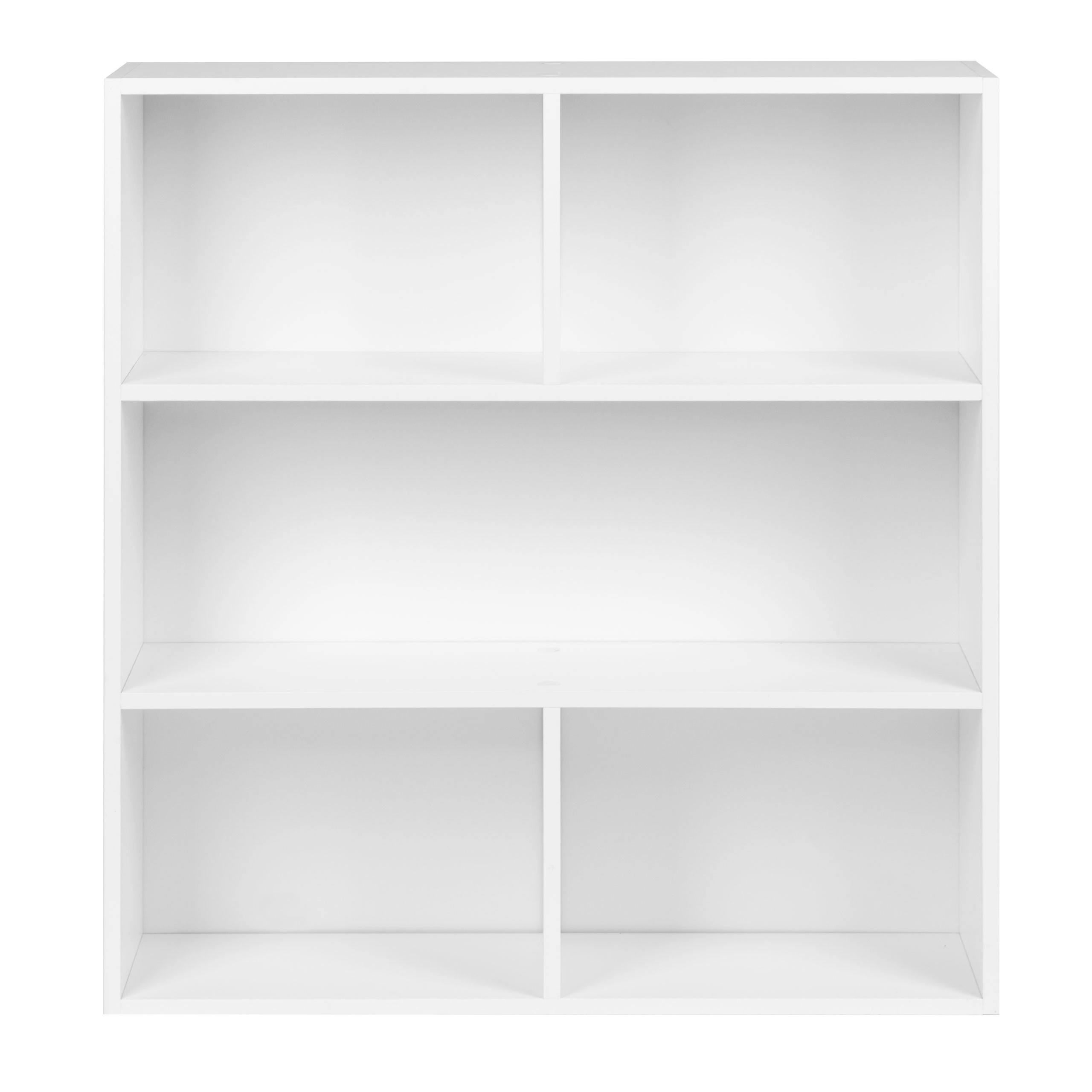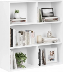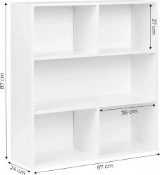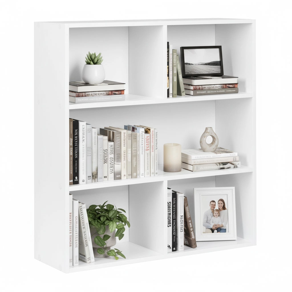 Tři otevřené police pojmou knihy, dekorace, dokumenty i úložné boxy. Každá police má nosnost až 10 kg pro bezpečné a každodenní používání.