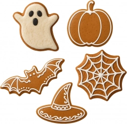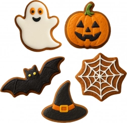 Duch, dýně, netopýr, čarodějnický klobouk a hvězda – pestrá sada motivů dodá vašemu pečení originální vzhled od podzimu až po Halloween.