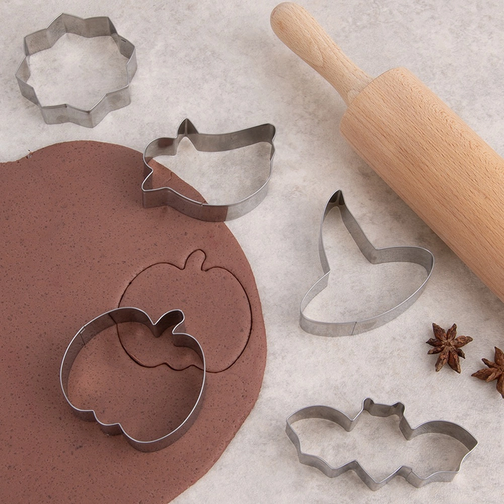 S touto sadou halloweenských vykrajovátek připravíte dokonale tvarované sušenky a perníčky s motivy duchů, dýní, netopýrů, čarodějnického klobouku a hvězdy. Ostré, tenké hrany z nerezové oceli zajišťují přesné a čisté řezy, aby se těsto nedeformovalo a tvary vynikly i po dozdobení polevou.