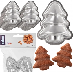 Praktická sada 20 kovových formiček ve tvaru vánočního stromku pro snadnou přípravu cukroví, perníčků, pralinek i dekorací. Formičky z ocelového plechu s povrchovou úpravou výborně vedou teplo, zajišťují rovnoměrné pečení a jsou odolné a trvanlivé. Díky kompaktním rozměrům se snadno čistí a skladují.