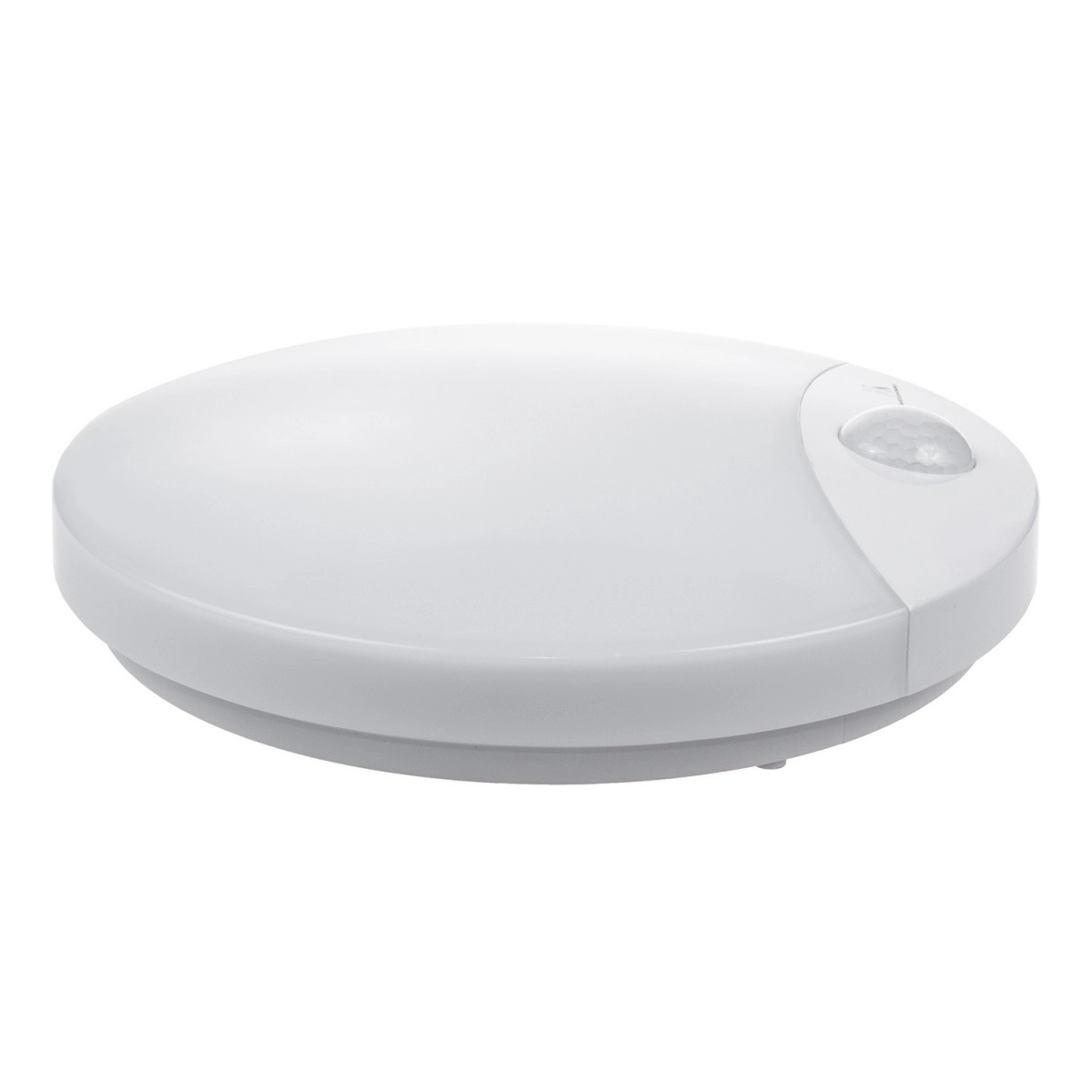Kompaktní stropní/nástěnné LED svítidlo s integrovaným PIR senzorem nabízí automatické rozsvícení při pohybu, úsporný příkon 10 W, světelný tok cca 900–950 lm a neutrální bílou 4000 K. Díky krytí IP44 je ideální do chodeb, schodišť a vstupních prostor.