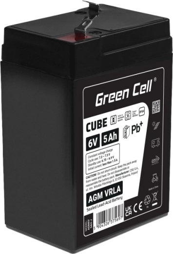 Kompaktní a spolehlivá AGM VRLA baterie 6 V 5 Ah s ochranou IP54 od GREEN CELL nabízí bezúdržbový provoz, bezpečnou konstrukci bez úniku elektrolytu a dlouhou životnost až 5 let. Vhodná pro cyklický i bufferový provoz, umožňuje práci v libovolné poloze díky technologii AGM.