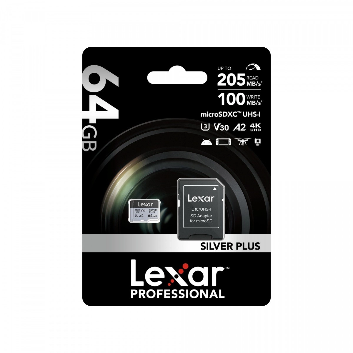 Hledáte spolehlivé a rychlé úložiště pro 4K záznamy, hry i velké přenosy dat? MicroSD karta 64 GB Silver Plus s rychlostí čtení až 205 MB/s a zápisu až 100 MB/s zvládne rychlé série snímků, plynulé 4K/60 fps video a svižné načítání aplikací díky specifikaci A2.