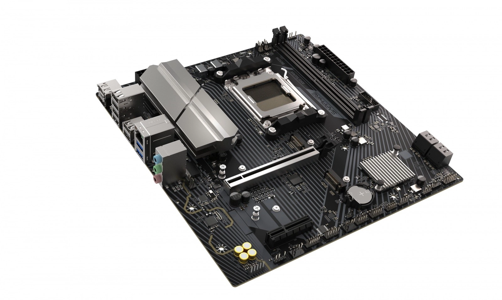 Kompaktní mATX základní deska Sapphire B650M‑E pro procesory AMD Ryzen na patici AM5 nabízí moderní výbavu pro herní i výkonné sestavy. Přináší PCIe 5.0 pro M.2 SSD, grafický slot PCIe 4.0 x16, rychlou DDR5 (Dual Channel, až 7600 MHz OC) a stabilní napájení díky 6+2+1 fázím VRM s chladiči. Nechybí efektivní chlazení VRM, M.2 a čipsetu a přehledné nastavení v Sapphire CORE BIOS.
