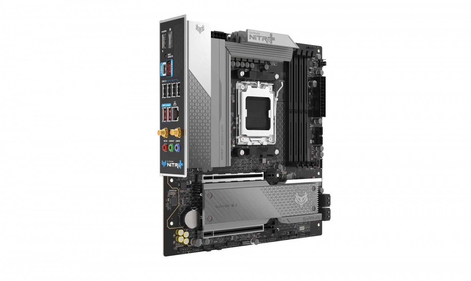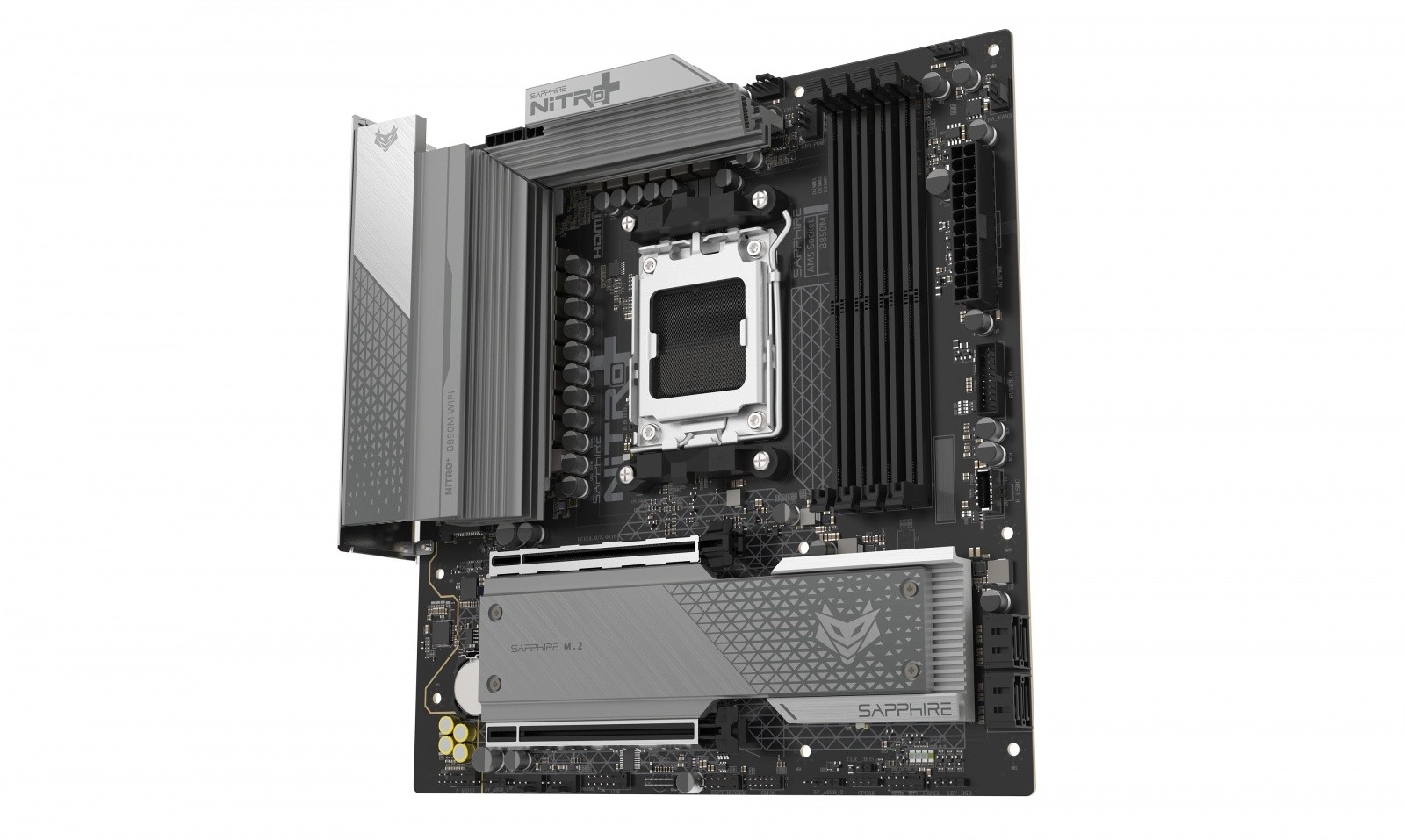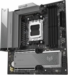 SAPPHIRE NITRO+ B850M WIFI je moderní mATX základní deska připravená na procesory AMD Ryzen pro patici AM5. Díky 12+2+1 fázovému napájení (55 A na fázi) a robustním chladičům VRM, M.2 i PCH poskytuje výbornou stabilitu a nízké teploty při dlouhodobé zátěži a přetaktování. Podpora dvoukanálové paměti DDR5 s možností vysokých taktů zajišťuje svižnou odezvu celé sestavy.