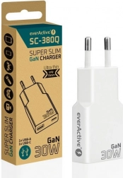 Ultratenká síťová nabíječka everActive s technologií GaN nabízí výkon 30 W, podporu Power Delivery a Quick Charge 3.0. Díky dvojici portů USB‑C + USB‑A rychle a bezpečně nabije telefon, tablet i drobnou elektroniku v kompaktním, cestovním provedení.