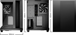 Navzdory kompaktnímu půdorysu pojme skříň radiátor až 360 mm, základní desky ATX a grafické karty do 400 mm. Chytrý držák disků nabízí současně místa pro 2× HDD a 2× SSD bez omezení prostoru za trayem pro vedení kabelů. Dvě možné pozice zdroje umožní využít desky se zadními konektory (Asus BTF, MSI Project Zero, Gigabyte Project Stealth) a přitom nepřijít o montážní pozice pro úložiště.