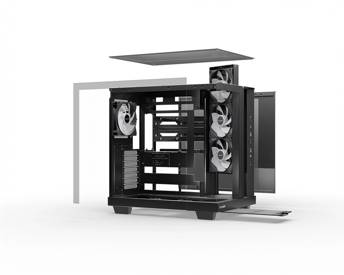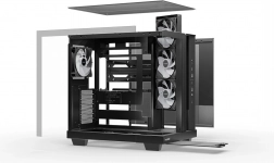 Prostorově úsporný interiér pojme radiátor až 360 mm, ATX základní desku a GPU do cca 400 mm. Inteligentní držáky disků umožní současně osadit 1× HDD a 2× SSD bez omezení prostoru za trayem. Dvě možné pozice napájecího zdroje usnadní stavbu s deskami se zadními konektory (ASUS BTF, MSI Project Zero, Gigabyte Project Stealth). Prachové filtry na boku a spodku zajišťují snadnou údržbu a čistý provoz.